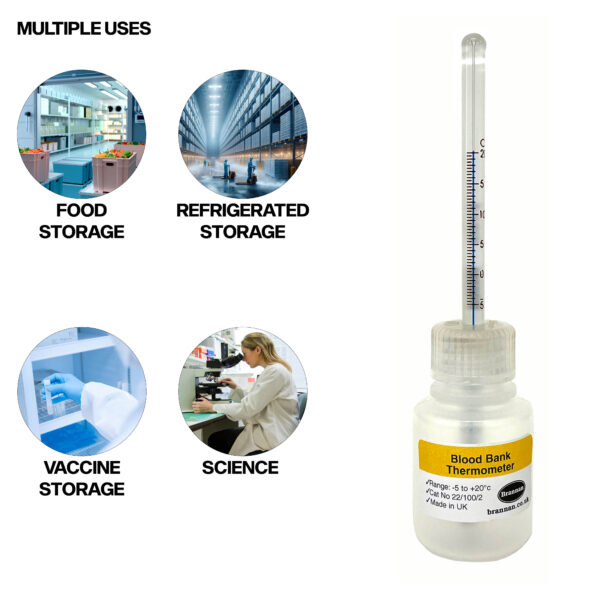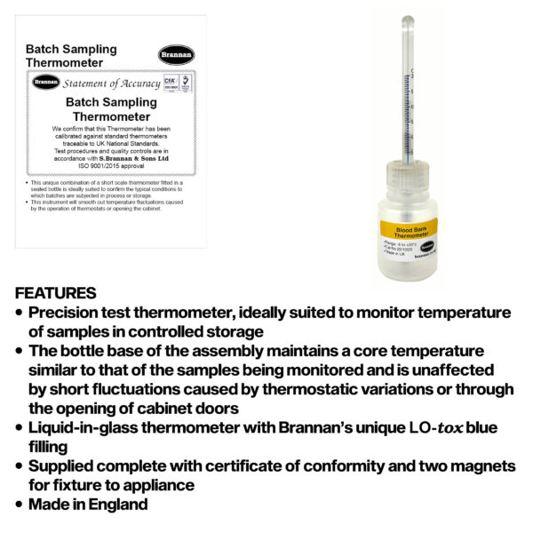 Precision test thermometers sealed into a 30ml polypropylene bottle.
