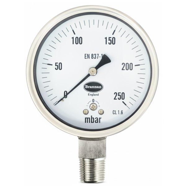 Perfect for low pressure measurements, this capsule gauge is part of Brannan’s range of commercial gauges. Available in black steel or stainless steel  suitable for harsh and corrosive environments and pressure media, with stainless steel or brass wetted parts.