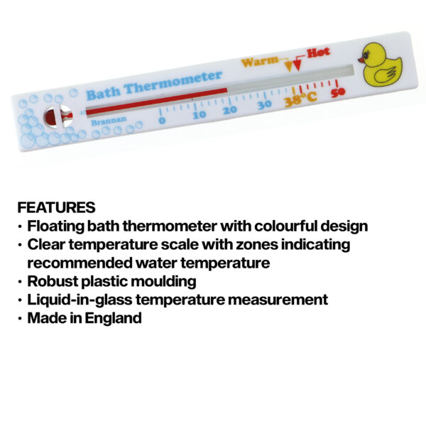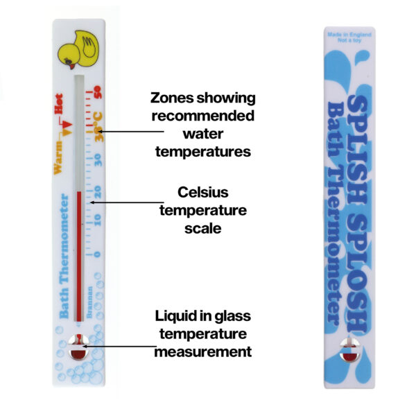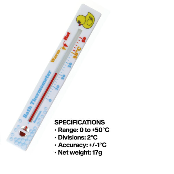 Both the very young and the elderly can be scalded by excessively hot water. The temperature indicators on this thermometer will help you determine the most comfortable and economical temperature for bath water.