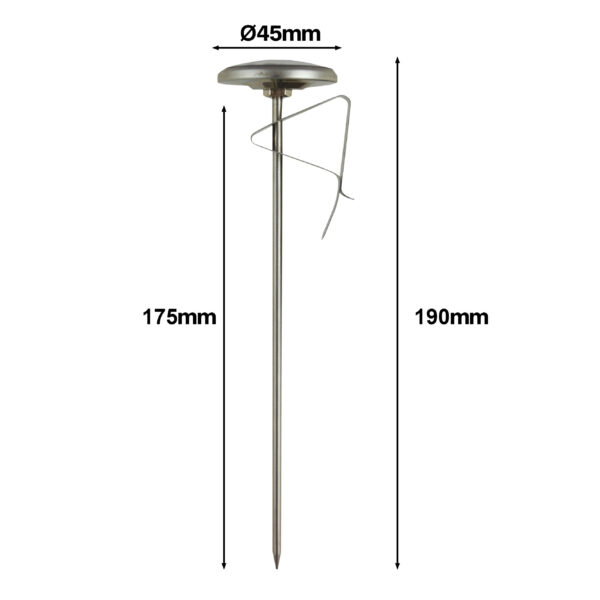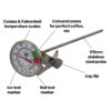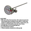 This professional milk and coffee thermometer with green and red zones enables fast and easy temperature readings in both °C/°F. With a temperature range of -10 to 110 °C, this thermometer also has a 175mm probe and a mounting clip for a stainless steel jug. A screw behind the dial face can be used for re-calibration.